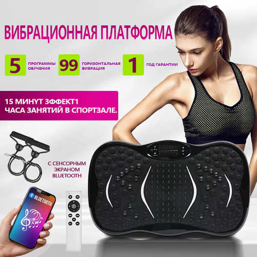 Виброплатформа для похудения до 150кг, Виброплатформа массажер для ног, 99 скоростей, эспандеры 2 шт, чёрная