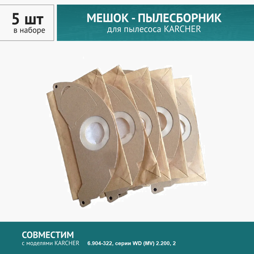 Мешок - пылесборник 5шт. для пылесоса Karcher 6.904-322, серии WD (MV) 2.200, 2