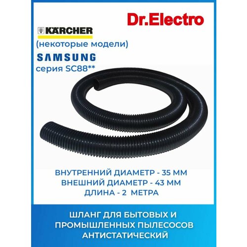 Wa35b2m Шланг для пылесоса антистатический, 35 мм, чёрный, 2 м