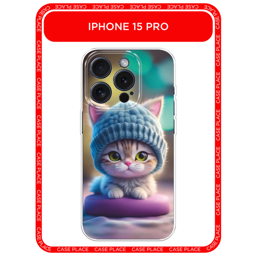 Чехол на Apple iPhone 15 Pro / Айфон 15 Про с принтом Котик в голубой шапочке