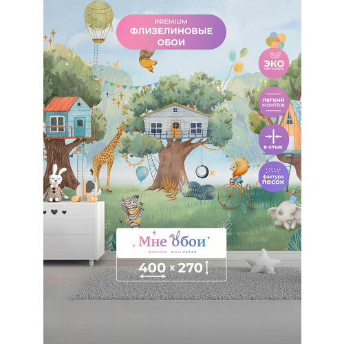 Фотообои детские флизелиновые на стену 3D "Лесные циркачи" 400х270 (ШхВ), 3д обои в детскую