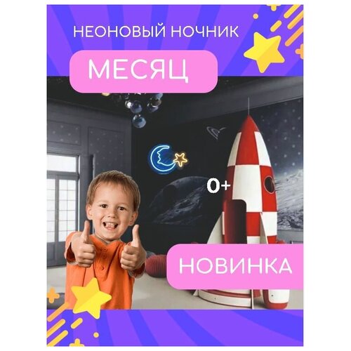 Неоновый ночник 0llneon Неоновый ночник месяц со звездой, 54х40 см.