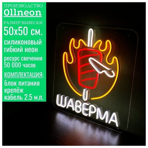 Неоновая вывеска 0llneon шаурма Неоновая вывеска шаверма, 35х79 см.