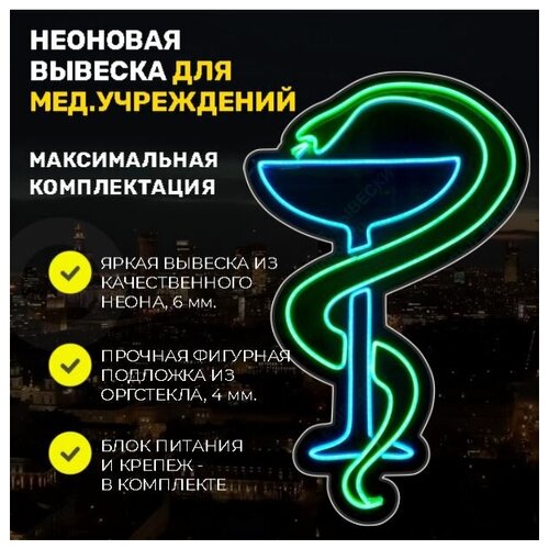 Неоновая вывеска 0llneon Неоновая вывеска змея чаша, 49х75 см.
