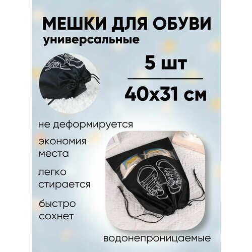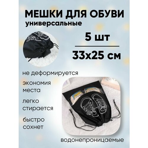 Мешки для обуви 5 штук, 33 х 25 см, черные