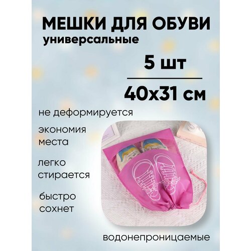 Мешки для обуви 5 штук, 33 х 25 см, розовые