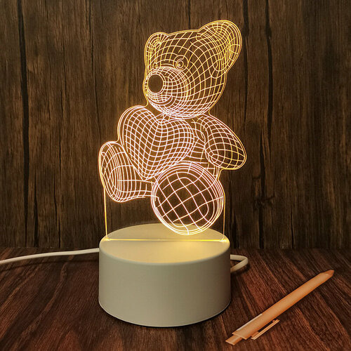 Ночник светильник 3D мишка с сердцем 7 цветов