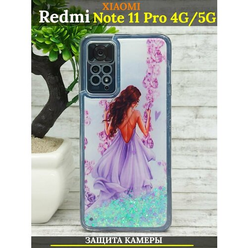Силиконовый чехол для Xiaomi Redmi Note 11 Pro 4G / 5G, 12 Pro (4G)с защитой камеры, с переливающимися блестками, сиреневая качель