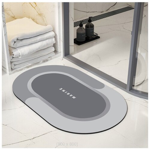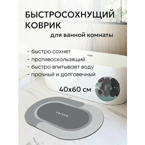 Быстросохнущий нескользящий абсорбирующий коврик для ванны/ быстро впитывающий коврик 40х60 см/ овальный/серый