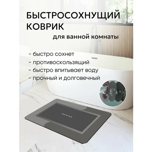 Быстросохнущий нескользящий абсорбирующий коврик для ванны/ быстро впитывающий коврик 45х70 см/ прямоугольный/серый
