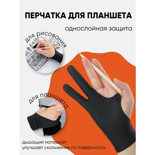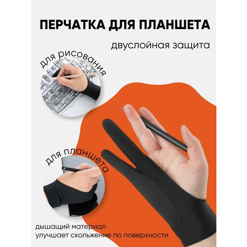 Перчатка антисенсорная для рисования на планшете и бумаге 2 пальца черная М