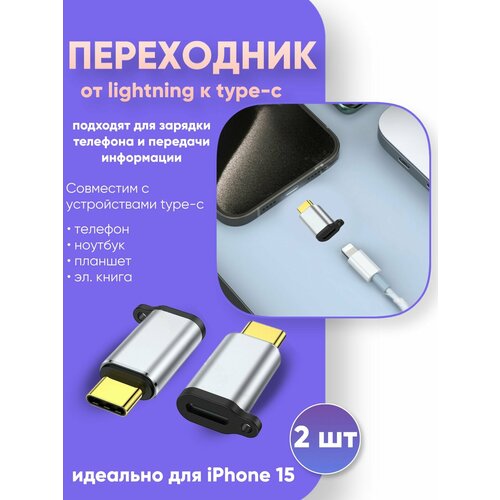 Переходник с Lightning на Type-C для 15 iPhone 2 штуки серебро