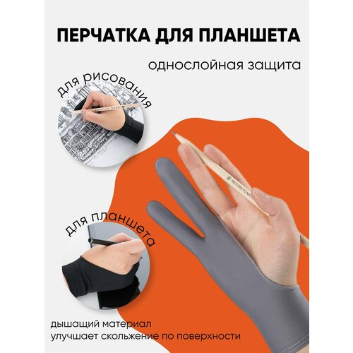 Перчатка антисенсорная для рисования на планшете и бумаге серая М