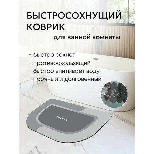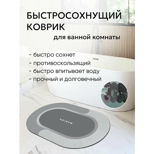Быстросохнущий нескользящий абсорбирующий коврик для ванны/ быстро впитывающий коврик 40х60 см/ полуовальный/серый