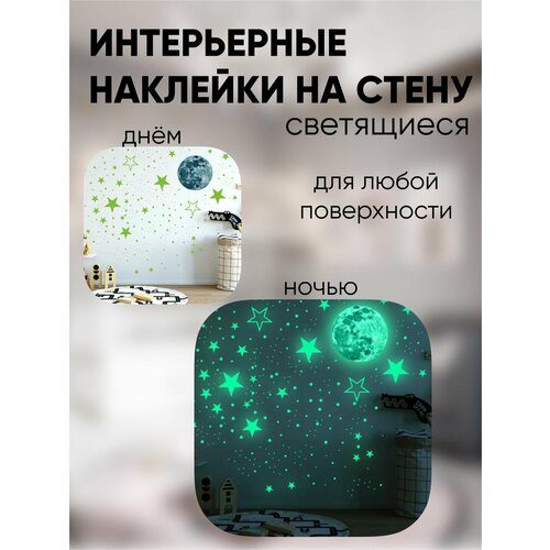 Светящиеся наклейки на потолок / флуоресцентные декоративные звезды/ светящиеся наклейки звездное небо / луна и звезды