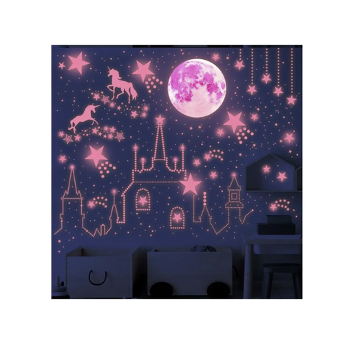 Светящиеся наклейки на потолок / флуоресцентные декоративные звезды/ светящиеся наклейки звездное небо / луна и звезды розовые