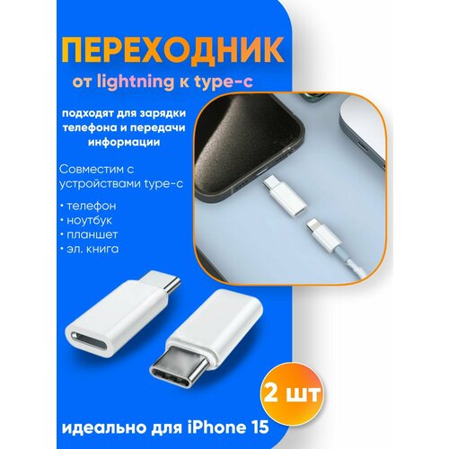 Переходник с Lightning на Type-C для 15 iPhone 2 штуки белые