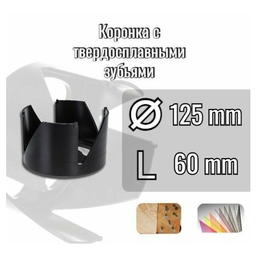 Коронка с твердосплавными зубьями D125 L60 по по дереву, дереву с гвоздями, фанеры, пвх, стеклопластику и сендвич панелям