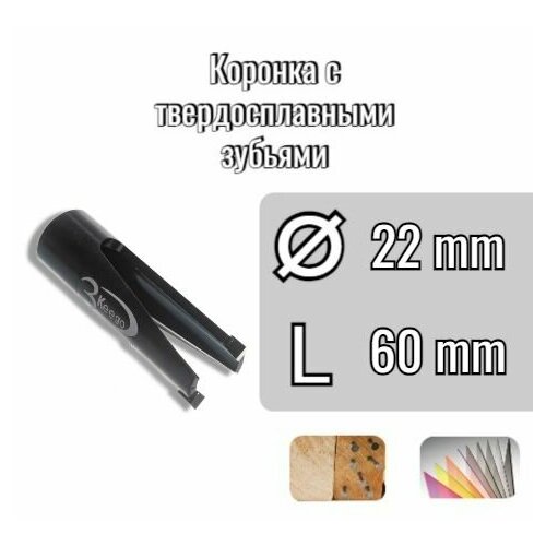 Коронка с твердосплавными зубьями D22 L60 по по дереву, дереву с гвоздями, фанеры, пвх, стеклопластику и сендвич панелям