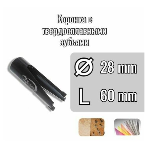 Коронка с твердосплавными зубьями D24 L60 по по дереву, дереву с гвоздями, фанеры, пвх, стеклопластику и сендвич панелям