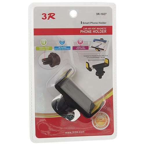 Держатель телефона на дефлектор 61-93мм вращение 360 черно-желтый 3R 3R-1027 100030019587
