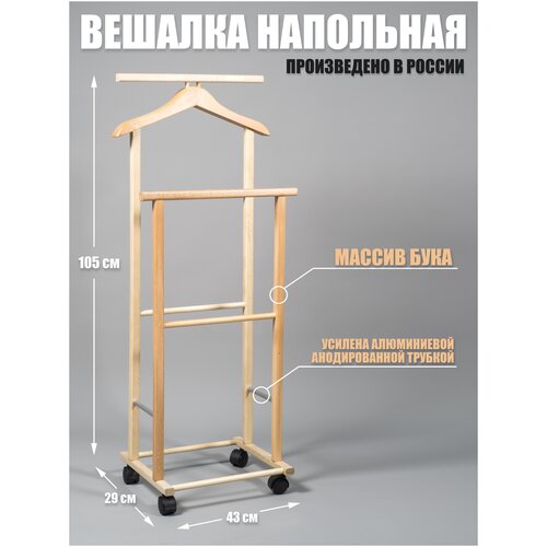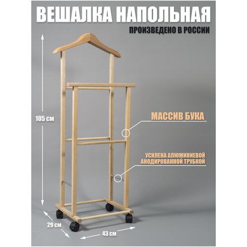 Напольная вешалка для одежды на колесиках цвет Береза