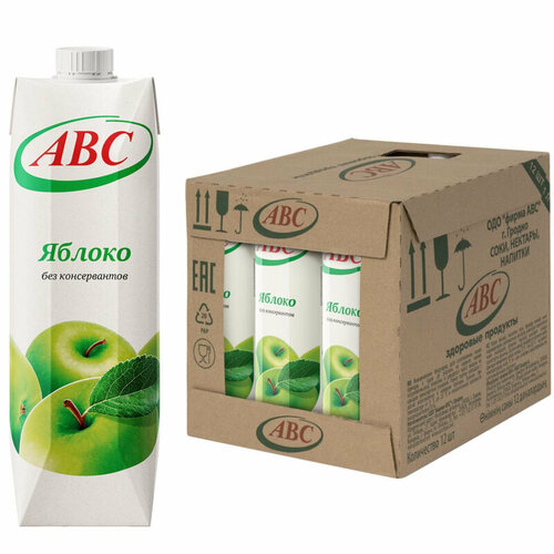 Сок ABC Яблочный осветленный восстановленный, 12шт по 1л
