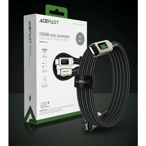 Кабель для быстрой зарядки и передачи данных ACEFAST Digital Display Superb Durability Zinc, Type-C to Type-C, PD100W, 2 метра, Серый+Черный