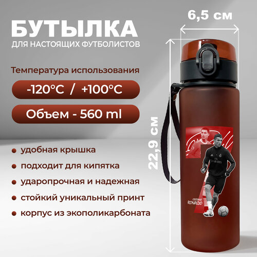 Спортивная бутылка для воды Aika "Футбол" с изображением Cristiano Ronaldo (Криштиану Роналду), объемом 560 мл, красного цвета