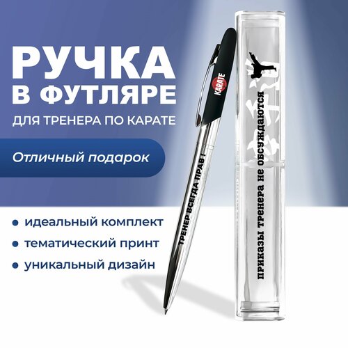 Ручка подарок для тренера по Карате с надписью "Тренер всегда прав!" в футляре