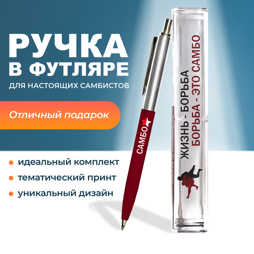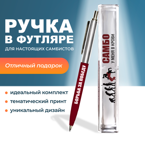 Ручка подарочная для самбиста с принтом и надписью "Борьба за победу" в футляре