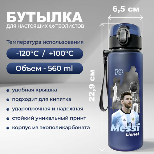 Спортивная бутылка для воды Aika "Футбол" с изображением Lionel Messi, объемом 560 мл, синего цвета