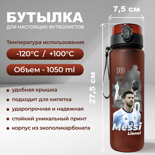 Спортивная бутылка для воды Aika "Футбол" с изображением Lionel Messi, объемом 1050 мл, красного цвета