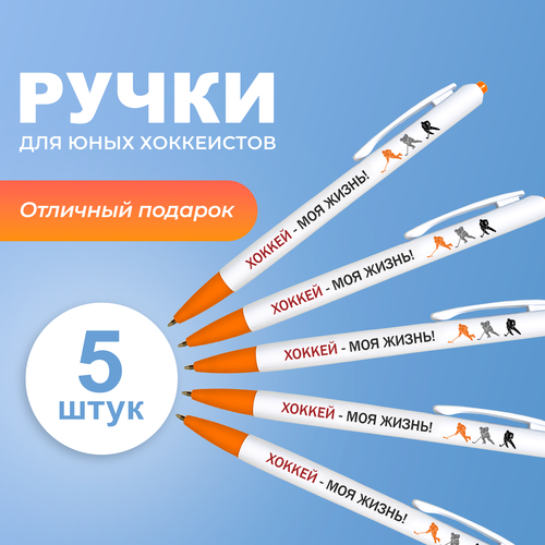 Набор шариковых ручек для юного хоккеиста с надписью "Хоккей-моя жизнь!"