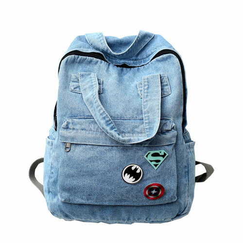 Рюкзак Bag&You джинсовый с акриловыми значками, цвет голубой
