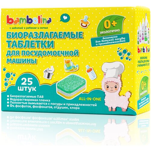 Биоразлагаемые таблетки для посудомоечных машин Bambolina, 25 шт.