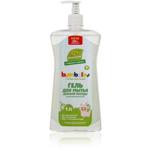 Гель для мытья посуды и детских принадлежностей Bambolina с дозатором, 1 л.