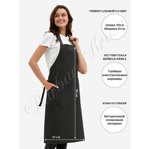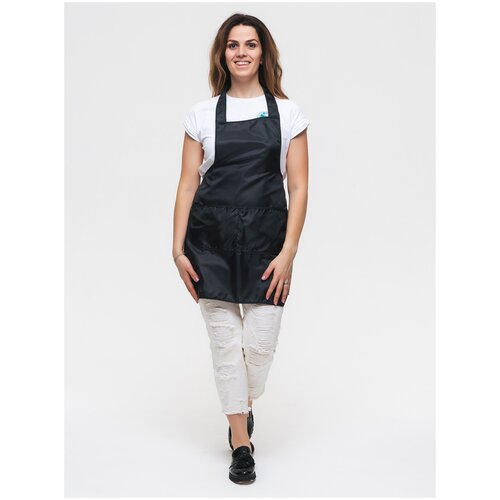 Фартук парикмахерский женский универсальный для мастера маникюра, кухонный. Черный 90/87 см Barbara Krasa