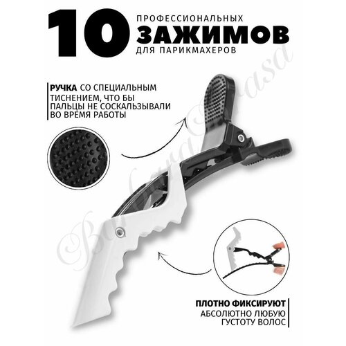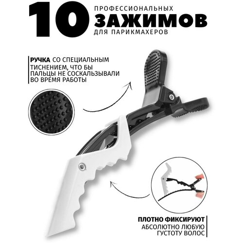 Зажимы для волос парикмахерские Крокодил - Уточка пластик черно-белый
