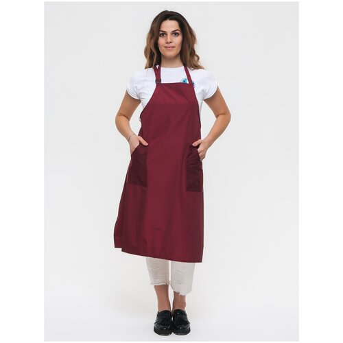 Barbara Krasa. Фартук парикмахерский женский - Фартук для мастера маникюра - Фартук кухонный - Универсальный фартук бордовый длинный 90смХ87см
