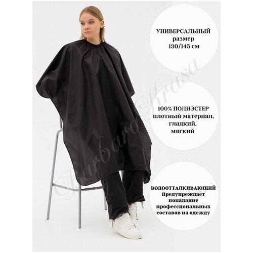 Пелерина парикмахерская Пеньюар парикмахерский Накидка для стрижки 75х100см черная Многоразовая НЕ шуршащая Антистатическая Водоотталкивающая