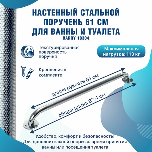 Поручень для ванной 61 см пристенный для пожилых для инвалидов металлический 10304