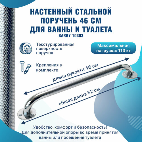 Поручень для ванной 46 см пристенный для пожилых для инвалидов металлический 10303