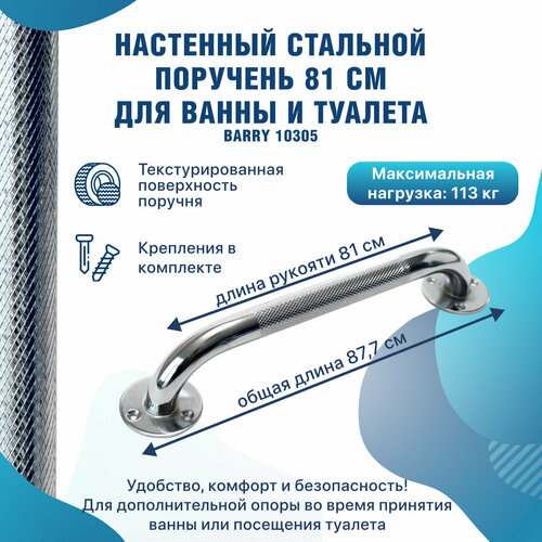 Поручень для ванной 81 см пристенный для пожилых для инвалидов металлический 10305