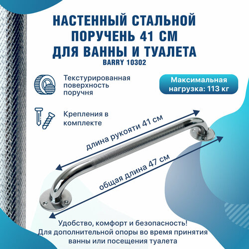 Поручень для ванной 41 см пристенный для пожилых для инвалидов металлический 10302