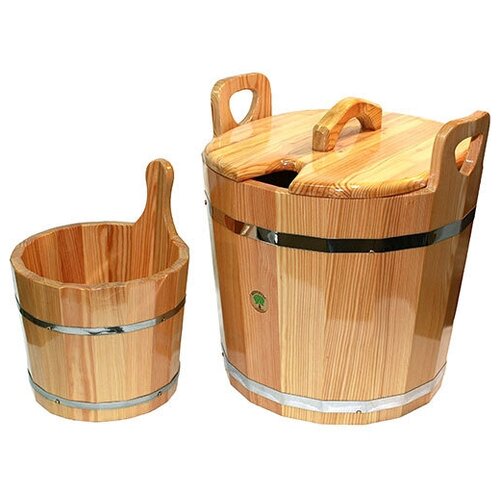 Запарник из лиственницы с крышкой, 22 л (натуральный)