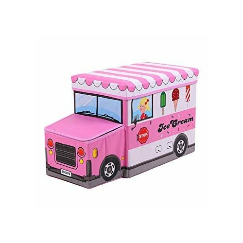 Ящик-пуф для игрушек "Автобус с мороженым, розовый"
