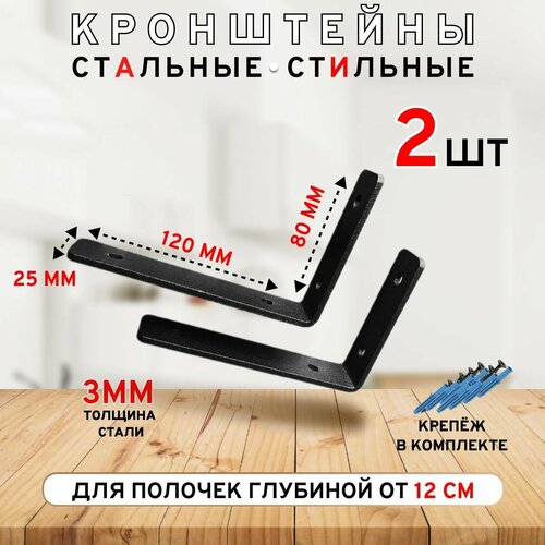 Кронштейн для полки глубиной от 12 см. черный 2 шт.