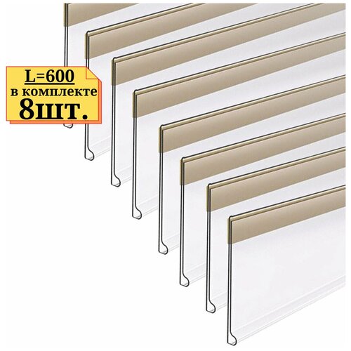 8шт. Ценникодержатель на полку прозрачный , ценникодержатель самоклеящийся, длинной 600мм, ценникодержатель полочный