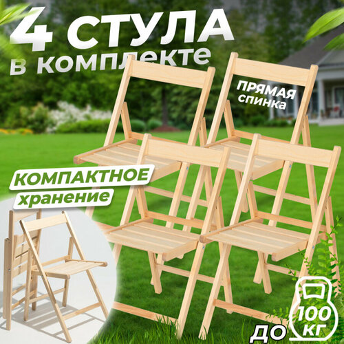 Стул складной деревянный стандарт Leomik / Стул с прямой спинкой из дерева кухонный для дома, дачи, балкона, террасы / Комплект 4 шт